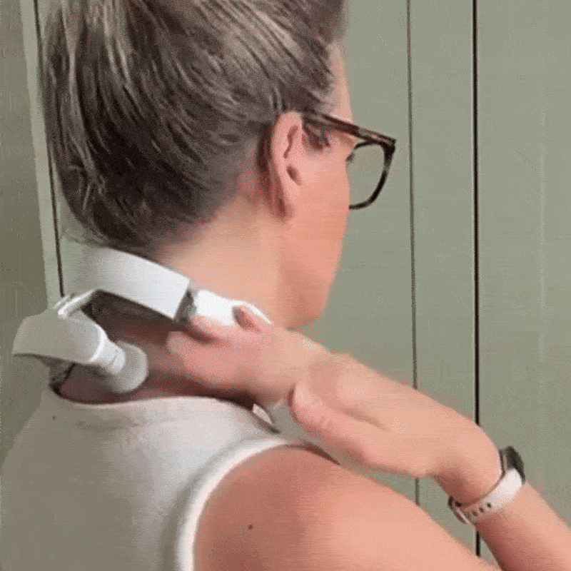 - Cihazı boynunuzun arkasına yerleştirin, masaj pedleri cildinize temas etsin.