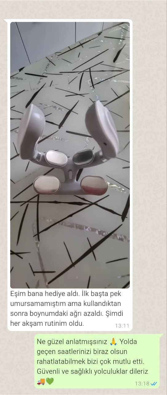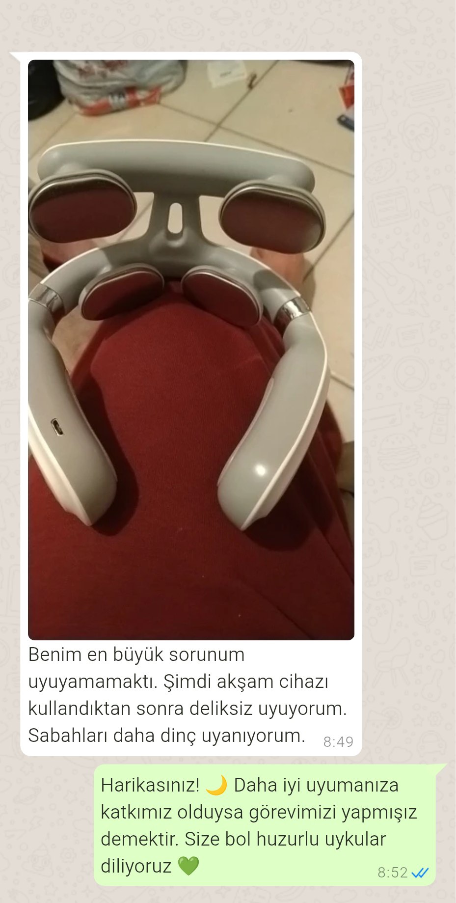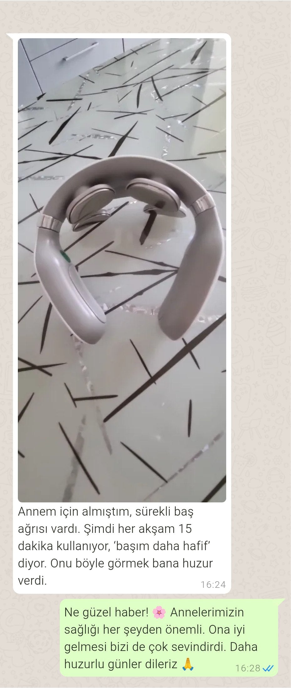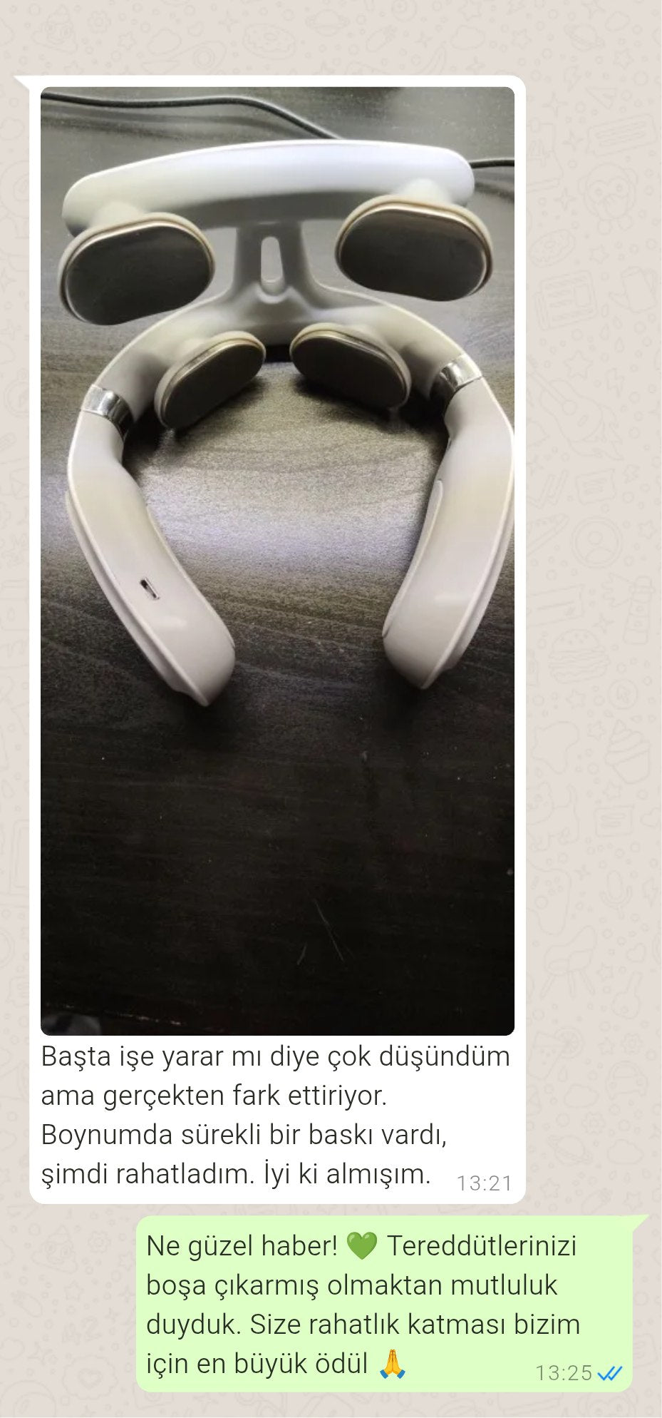 Bu gelişmiş cihaz 🔥 ısıtma özelliği, 🎯 16 masaj seviyesi, ✋ akupresür etkisi ve ⚡ hızlı şarj teknolojisi ile boynunuzu rahatlatır. Sadece 30 dakikalık şarjla 3 haftaya kadar kullanım, kas gevşemesi, kan dolaşımının artması ve sinir sisteminde doğal sakinleşme sağlar. 💆♀️🌙